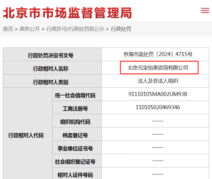 最終,北京市市場監(jiān)督管理局(簡稱“北京市監(jiān)局”)對元寶怡美做出以下處罰:罰款639.89萬元,幾乎是涉案產(chǎn)品貨值的六倍;沒收違法所得106.65萬元;共計罰沒款746.54萬元。