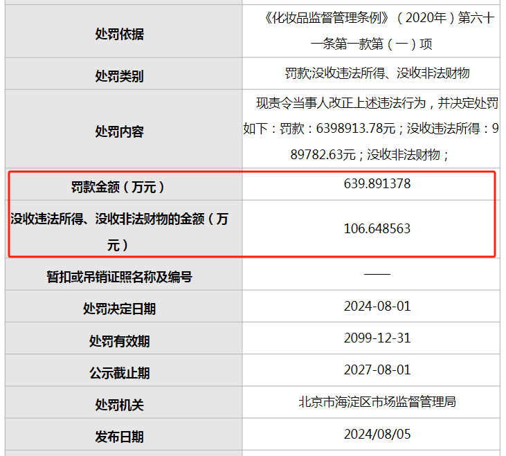 化妝品行業(yè)開出了一張“天價罰單”。