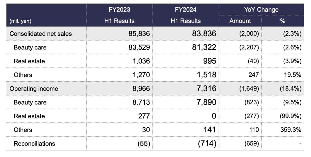 2024年上半年,POLA集團美容護理銷售額為813億日元(約合人民幣40億元),同比下降2.6%;營業(yè)利潤為79億日元(約合人民幣3.8億元),同比下降9.5%。