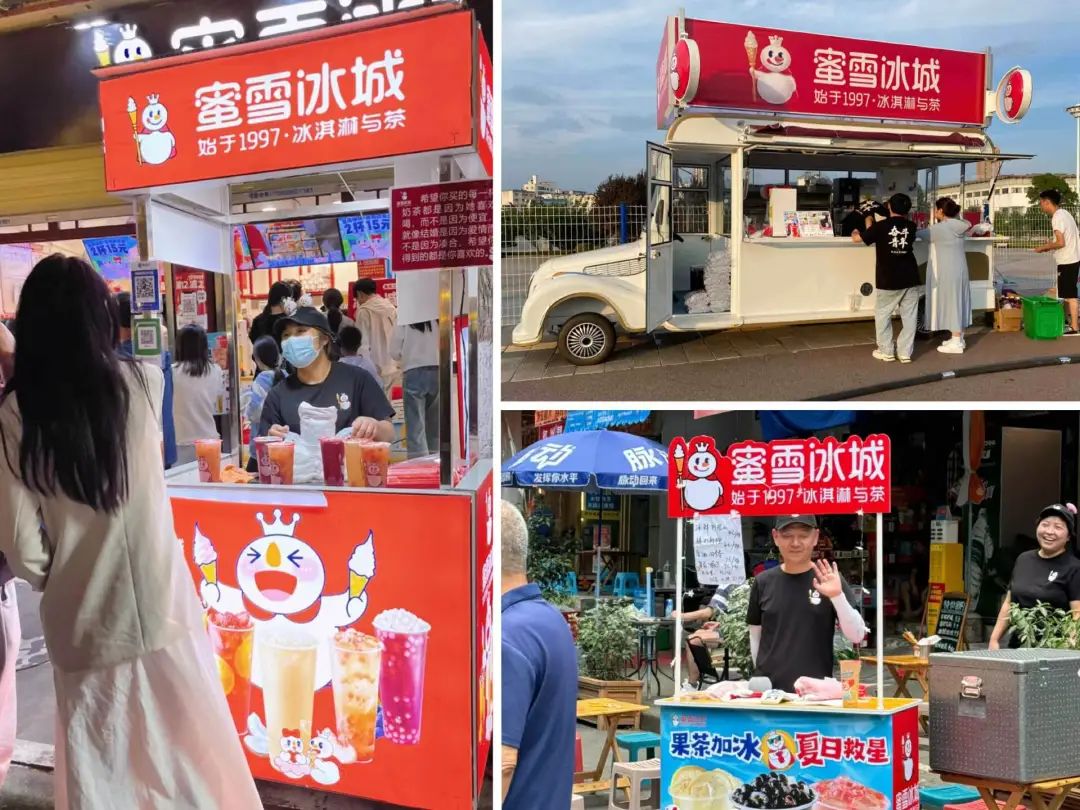 蜜雪冰城也在安徽、遼寧、廣西、福建等地的夜市、小吃街上曾開出了流動小攤。有的是帶有蜜雪冰城品牌橫幅的豪華小汽車,也有簡便版的三輪車、小推車,還因此火上熱搜,被不少網(wǎng)友心疼“雪王太努力了”。