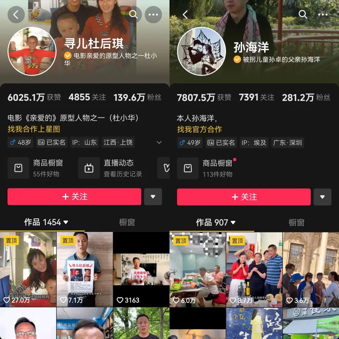 除了解清帥,不少社會新聞事件中的尋親主人公,都陸續(xù)開啟了帶貨:電影《失孤》的原型郭剛堂,電影《親愛的》的原型之一孫海洋和其長女孫悅,同為《親愛的》原型之一的杜小華……