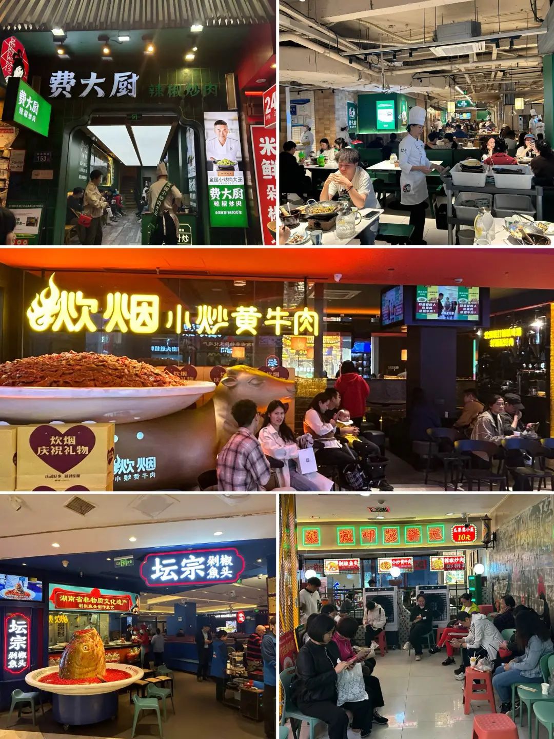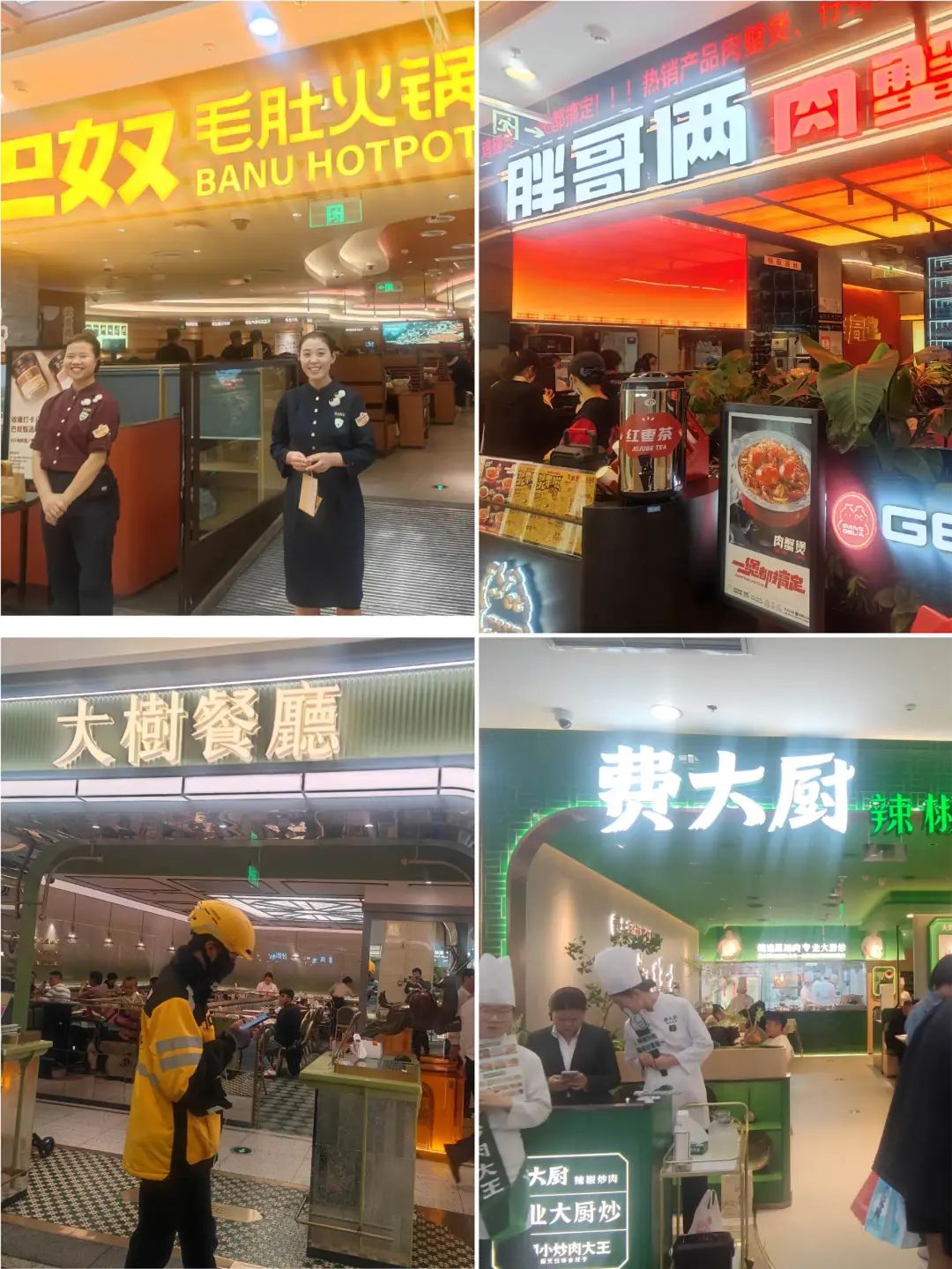 正餐層人氣火爆的當(dāng)屬巴奴毛肚火鍋、胖哥倆肉蟹煲、費(fèi)大廚等。尤其是費(fèi)大廚,店內(nèi)座無(wú)虛席,店外也排起了長(zhǎng)隊(duì),等待的人群絡(luò)繹不絕。