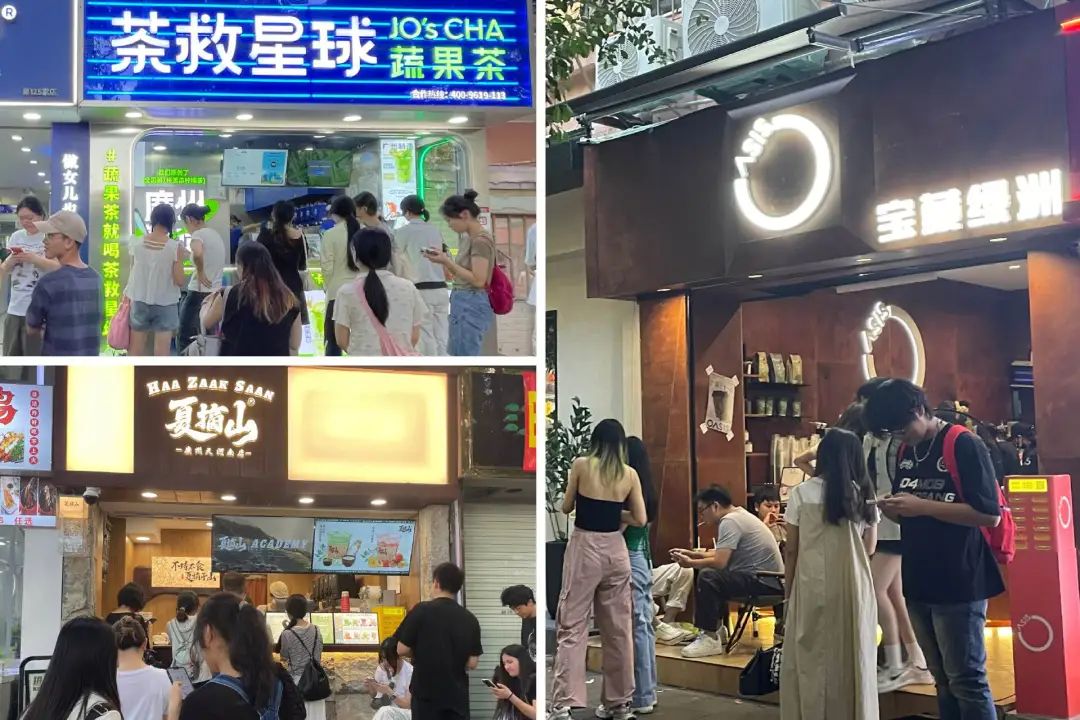 香檳廣場(chǎng)東邊的“奶茶一條街”,步行3分鐘的路上就有超過(guò)10家不同品牌的奶茶甜品店。