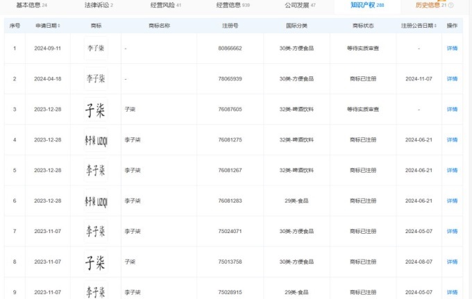 一方面,此前李子柒和微念因“李子柒品牌”收益分成問(wèn)題展開(kāi)的爭(zhēng)議,已得到妥善解決。結(jié)合天眼查信息來(lái)看,杭州微念不再持有“李子柒”“柒”“子柒”三個(gè)品類商標(biāo)。這些商標(biāo)全部歸四川子柒文化傳播有限公司所持有,這家公司李子柒持股比例高達(dá)99%。簡(jiǎn)單來(lái)說(shuō)就是,李子柒對(duì)“李子柒”商標(biāo)具有絕對(duì)的話語(yǔ)權(quán)。