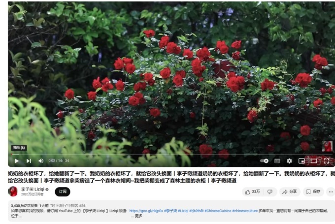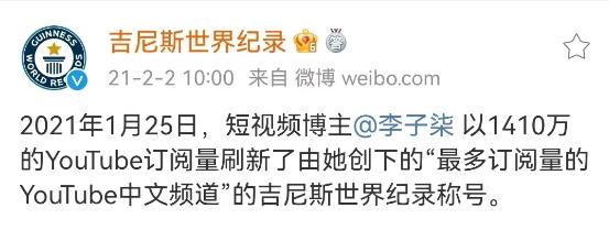 且李子柒在外網(wǎng)保持有著較大的影響力,其不僅以1410萬(wàn)的YouTube訂閱量,刷新由她創(chuàng)下的“最多訂閱量的YouTube中文頻道”的吉尼斯世界紀(jì)錄稱號(hào),而且在停更的三年多時(shí)間里,粉絲仍暴漲500萬(wàn)。視頻更新后,李子柒的粉絲量已破2000萬(wàn)。