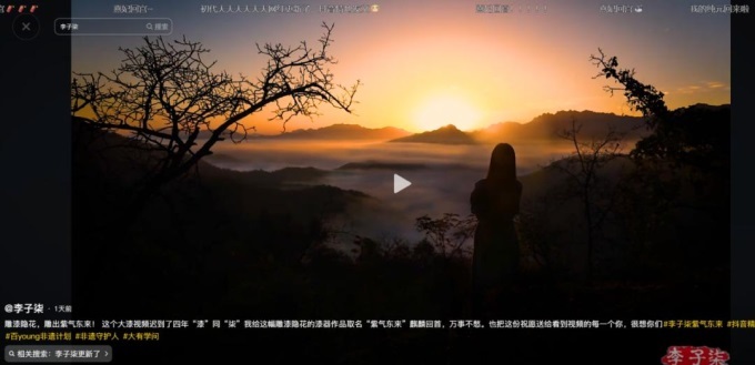 11月12日下午4時(shí)30分,李子柒發(fā)布了一條以中國(guó)非物質(zhì)文化遺產(chǎn)“漆器”為主題的視頻,回到大眾視野。