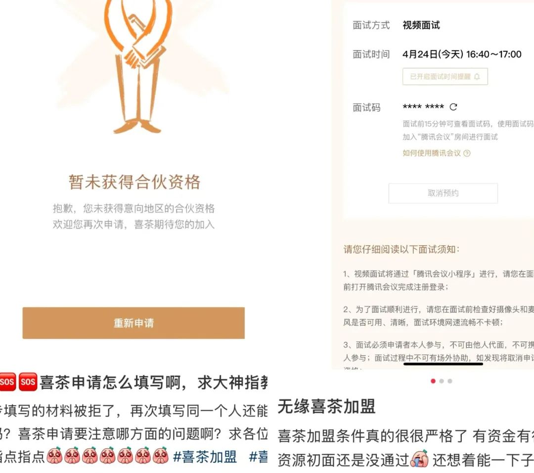 近日,不少申請喜茶加盟的加盟商,在社交平臺上紛紛表示“加盟門檻變高,加盟政策有所改變”的消息。