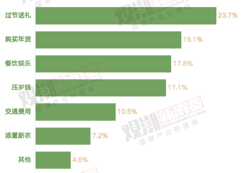 各項支出中,「過年送禮」「購買年貨」「餐飲娛樂」合計占比超60%,是三個春節(jié)“吞金獸”。