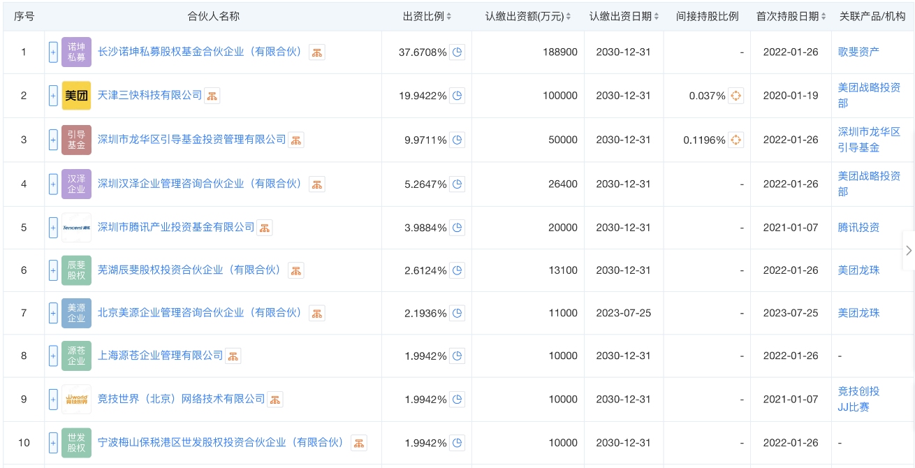截至2025年2月23日美團(tuán)龍珠的主要LP,圖片來源:天眼查