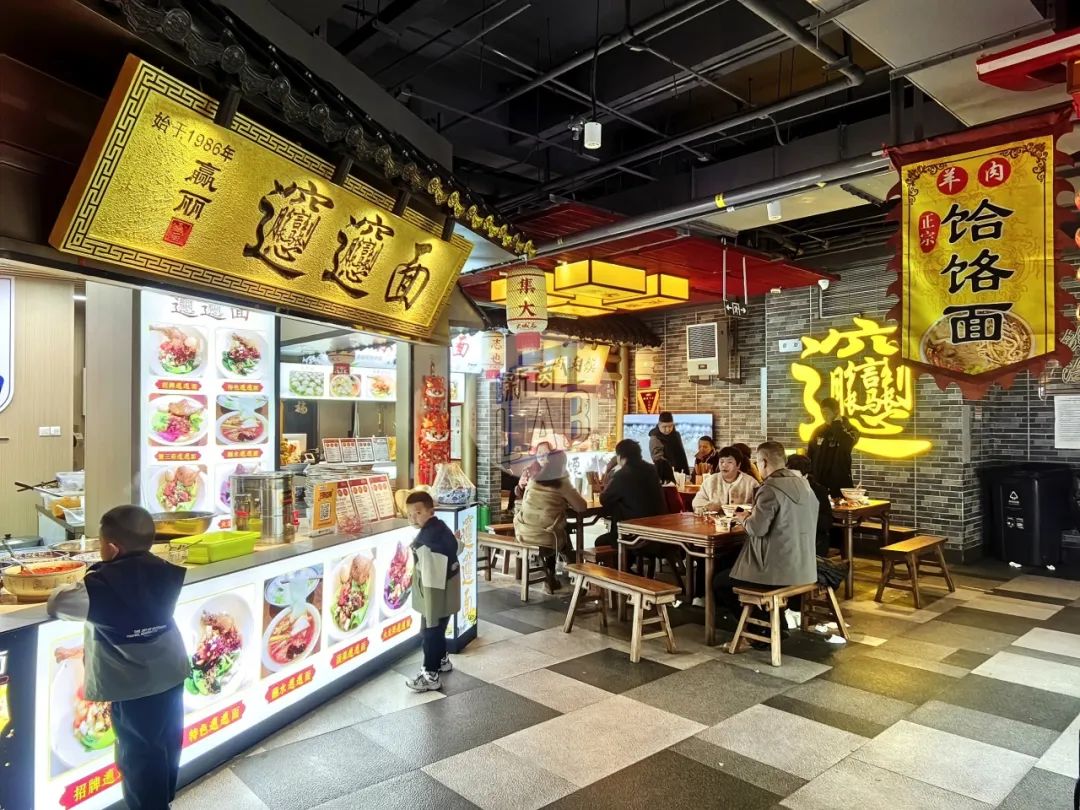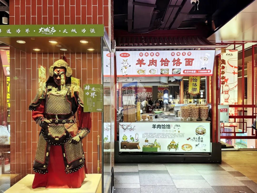 走出銀泰西安曲江店,在火熱的大唐不夜城旁,還有多家商場(chǎng),如主打陜西本地美食的小體量商業(yè)「大城志尚食坊」,其整體人氣雖不能與大唐不夜城相提并論,也比隔壁的銀泰西安曲江店要好很多。
