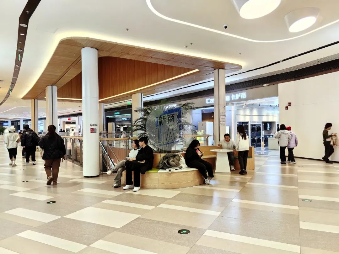 我們?cè)诂F(xiàn)場(chǎng)看到,無(wú)論是進(jìn)門就帶電源插座的休息區(qū),還是位于一樓中庭黃金鋪位的兩家兒童樂(lè)園,以及將公區(qū)廊橋做成兒童互動(dòng)作品展示區(qū)等,都展現(xiàn)了這座北歐商場(chǎng)無(wú)處不在的「實(shí)用主義精神」。