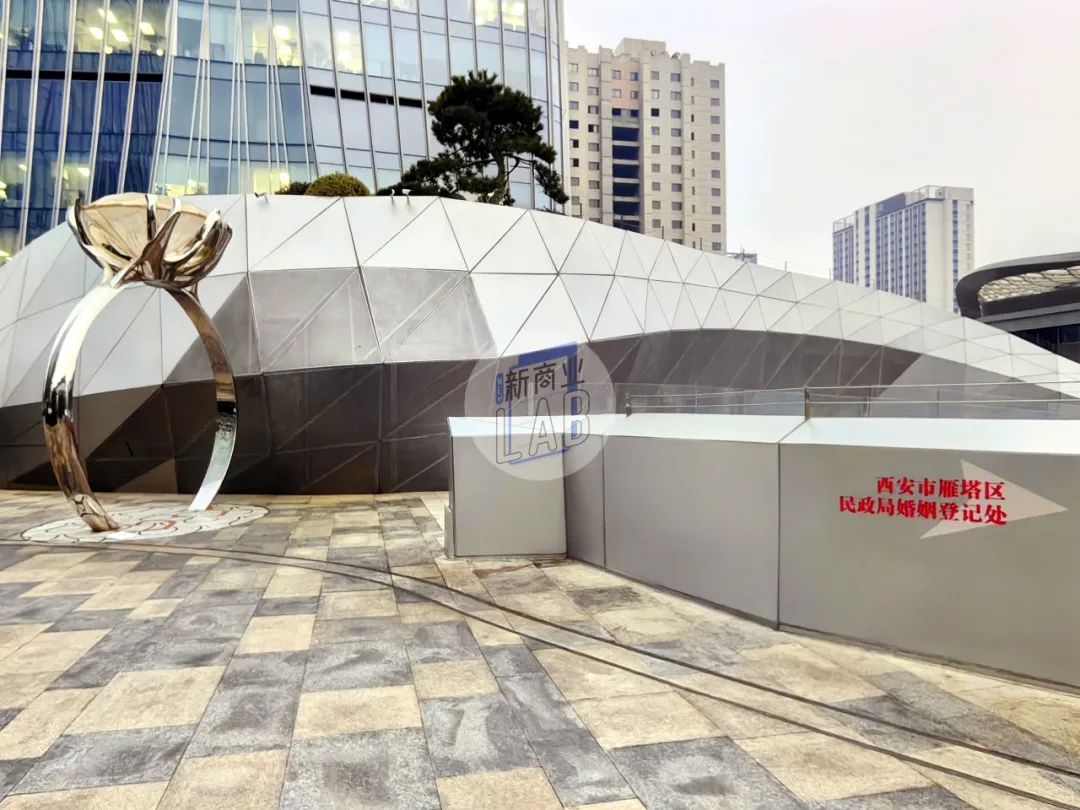 網(wǎng)上的「西安愛(ài)情指南」寫道,商場(chǎng)內(nèi)有伊甸園般的公園谷地場(chǎng)景,適合情侶拍照打卡;屋頂設(shè)有「雁塔區(qū)民政局婚姻登記處」,適合情侶升級(jí)為恩愛(ài)夫妻;周邊的高檔住宅、寫字樓及推進(jìn)中的索菲特酒店,更將西安有情人的人生軌跡安排得明明白白。