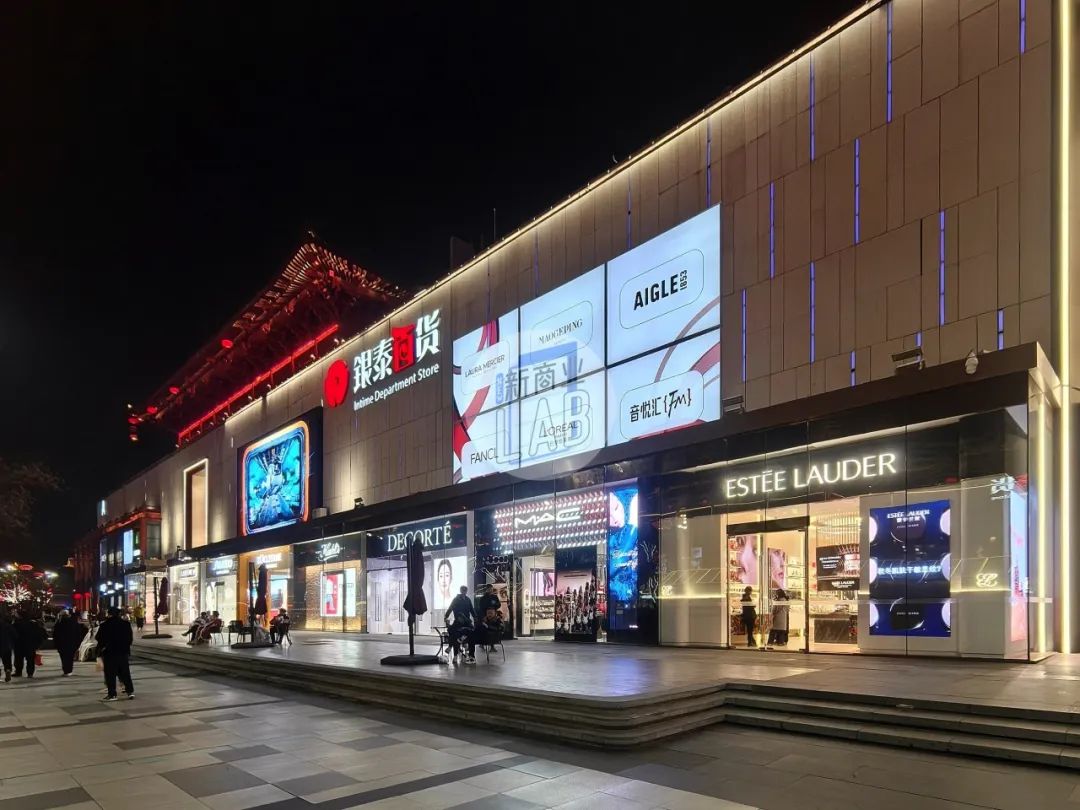 在大唐不夜城的南端,「銀泰西安曲江店」的A館、B館分別位于步行街的西、東兩側(cè)。這家開(kāi)業(yè)超10年的傳統(tǒng)百貨商場(chǎng),近些年一直致力于改造升級(jí),如B館主打二次元氛圍,而主打潮流時(shí)尚的A館則引入多家國(guó)際美妝品牌。