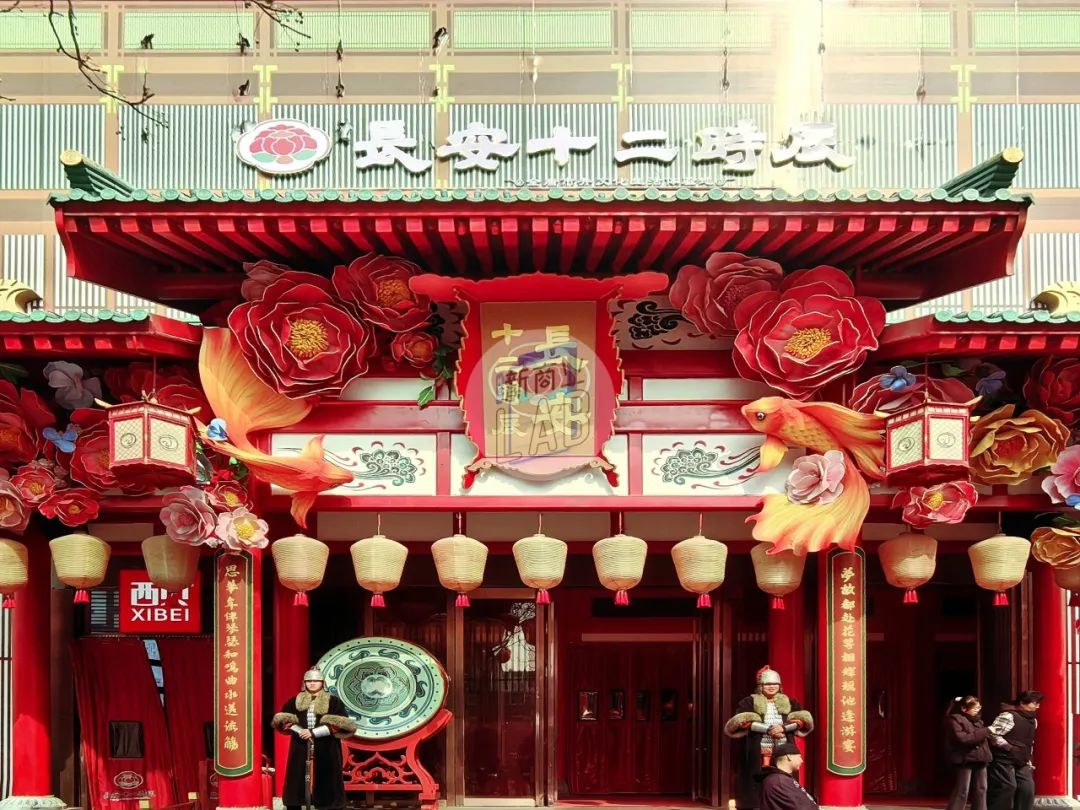 位于大唐不夜城與大唐芙蓉園這兩大文旅地標(biāo)之間的「長(zhǎng)安十二時(shí)辰」,是國(guó)內(nèi)不多見(jiàn)的門票制商業(yè)體。項(xiàng)目位于曲江曼蒂?gòu)V場(chǎng)內(nèi),占地約2.4萬(wàn)㎡,是在電視劇《長(zhǎng)安十二時(shí)辰》的IP基礎(chǔ)上,全場(chǎng)景還原了盛唐時(shí)期的長(zhǎng)安市井氛圍。