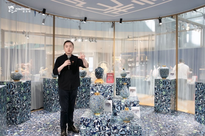 朱炳仁銅品牌創(chuàng)始人、浙江省工藝美術(shù)大師、國家級(jí)非遺銅雕技藝代表性傳承人朱軍岷先生親臨現(xiàn)場(chǎng),帶來了一場(chǎng)以《元起青花》為主題的精彩藝術(shù)分享。他深入解讀了“仁彩十二式之元起青花”系列作品的創(chuàng)作靈感、工藝特色,以及背后所蘊(yùn)含的深厚文化內(nèi)涵。朱軍岷先生表示,“元起青花”系列作品將傳統(tǒng)銅雕技藝與經(jīng)典的青花藝術(shù)相結(jié)合,通過創(chuàng)新的手法,讓古老的非遺在當(dāng)代社會(huì)煥發(fā)出新的活力。