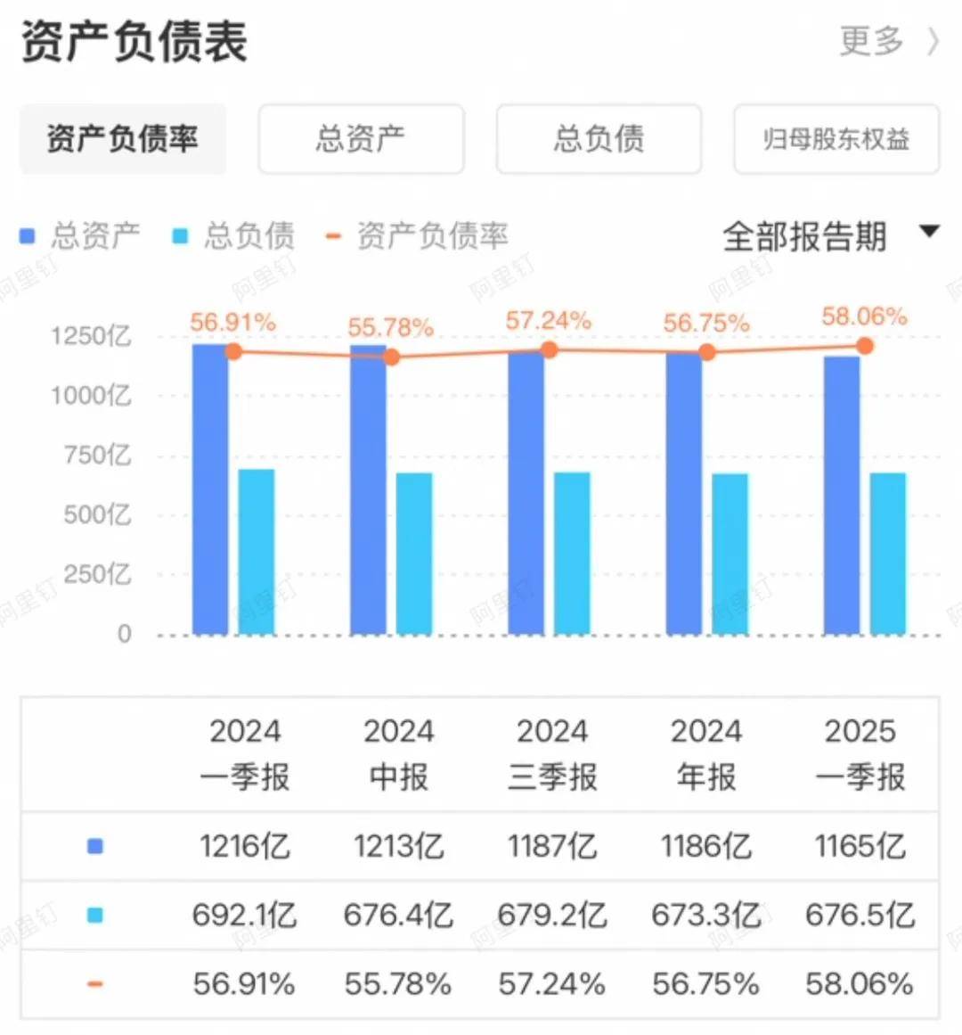 雖然2025年第一季度財(cái)報(bào)中,紅星美凱龍的總資產(chǎn)價(jià)值顯示仍超過(guò)1100億元,但是其負(fù)債總額也達(dá)到了約676.5億元,資產(chǎn)負(fù)債率逼近60%。業(yè)內(nèi)通常認(rèn)為主營(yíng)商場(chǎng)、百貨零售類企業(yè)的資產(chǎn)負(fù)債率適宜水位在40%至60%,同時(shí)銀行對(duì)60%以上的高負(fù)債率企業(yè)經(jīng)常也會(huì)收緊貸款政策,紅星美凱龍已經(jīng)相對(duì)接近了紅線。