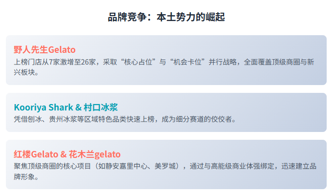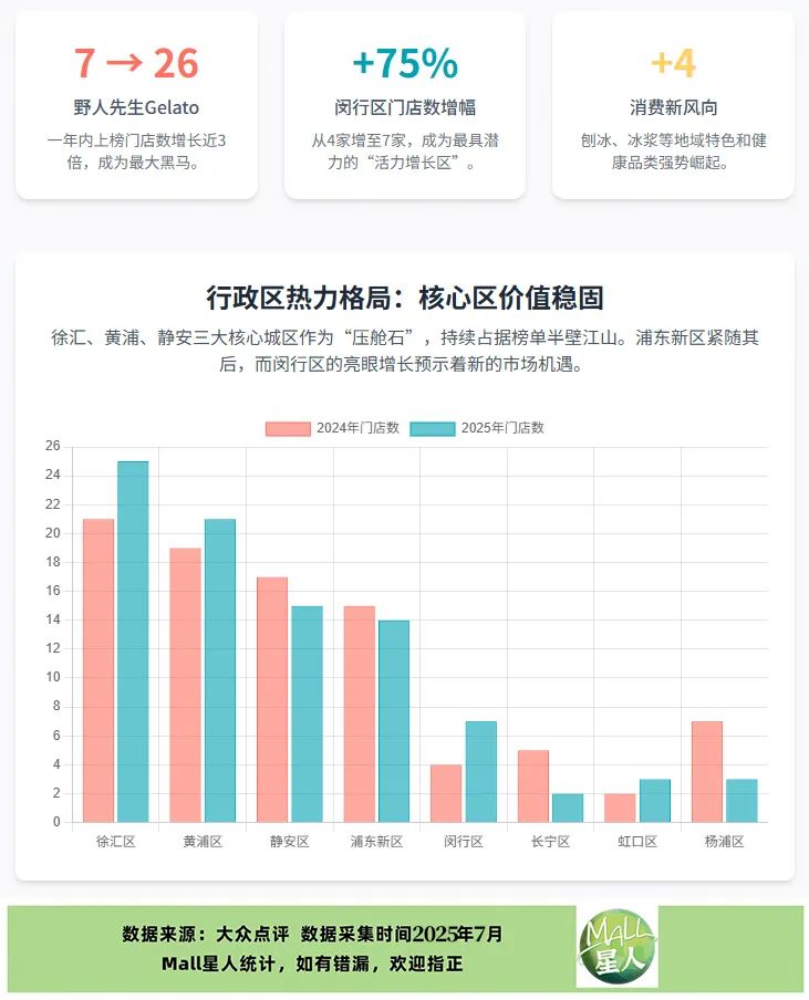 2025年新增:刨冰(7家)、貴州冰漿(4家)、酸奶冰淇淋(2家)、椰子冰淇淋(1家),顯示消費者對“地域特色”和“健康輕食”的偏好。