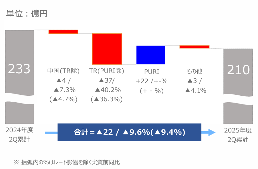 譬如,花王中國業(yè)務(wù)按計(jì)劃銷售額增長,天貓Curél和freeplus旗艦店(2025年1-6月)GMV增長103%,但其仍在財(cái)報(bào)中指出,在中國隨著市場增長放緩和競爭環(huán)境加劇,實(shí)施了抑制出貨以調(diào)整流通庫存的措施,導(dǎo)致整個(gè)亞洲的銷售額大幅低于上期,且海外市場的各細(xì)分業(yè)務(wù)也因亞洲競爭加劇和歐美增長停滯而出現(xiàn)同比下降。
