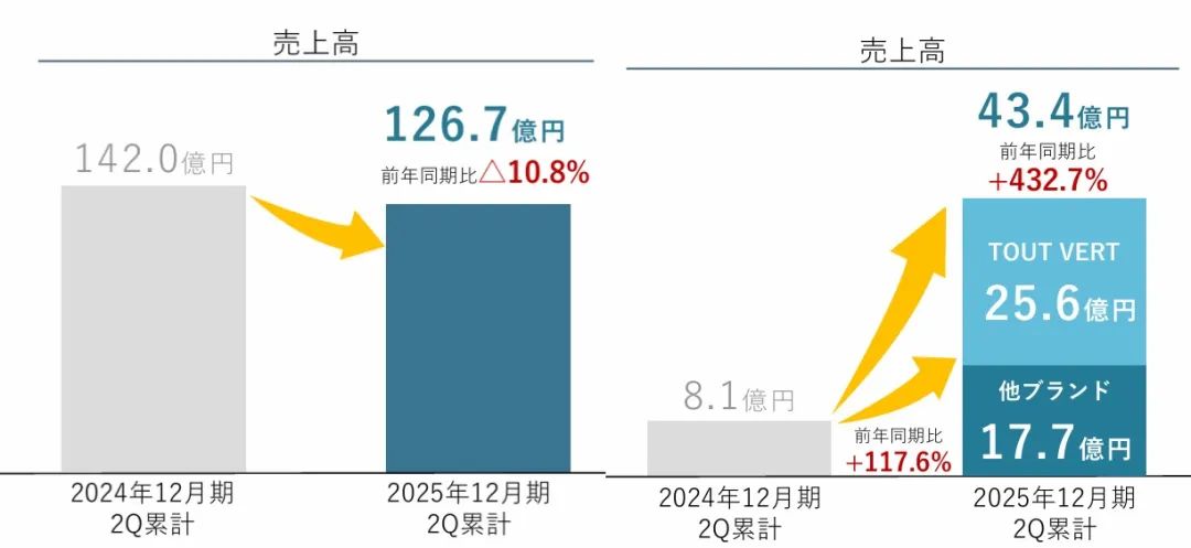 其中,與美妝相關(guān)的健康美容護(hù)理業(yè)務(wù)、化妝品業(yè)務(wù)2025上半年銷售額分別為2115億日元(約合人民幣103.21億元)、1185億日元(約合人民幣57.83億元)。