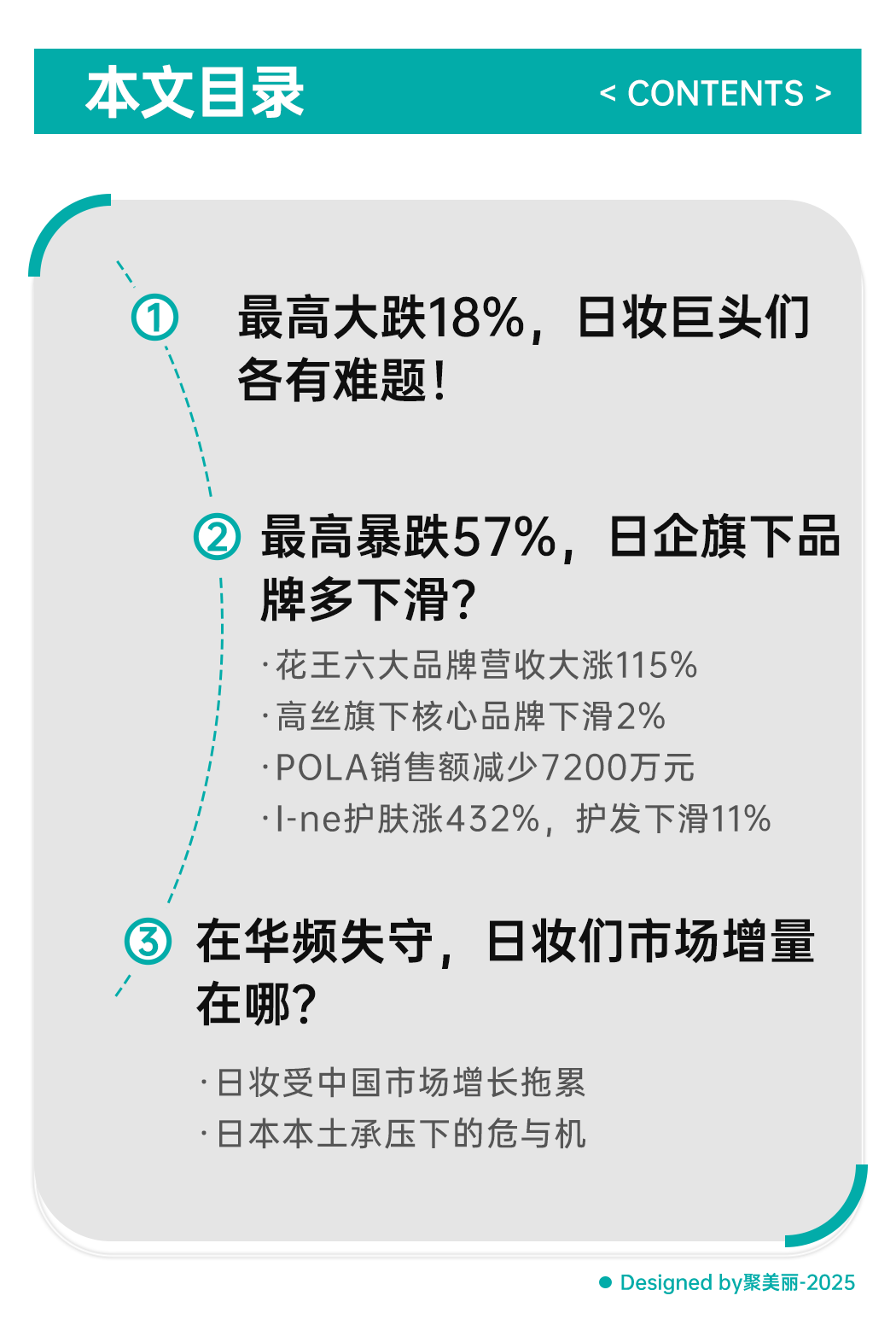 日妝持續(xù)在走下坡路,且不止在中國市場面臨嚴(yán)峻挑戰(zhàn),從整體業(yè)績、業(yè)務(wù)、地區(qū)表現(xiàn)等不同視角看,日妝巨頭們也有各自的難題: