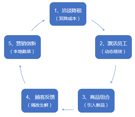 她采取5大措施:一是洽談降租。和物業(yè)方、供應(yīng)商反復(fù)洽談,基于誠信約定新的合作條件,雙降成本;二是激活員工。采用動態(tài)績效方法,績效幅度提高13.3%;三是商品組合。獨自選品、確!昂秘洝蓖瑯涌梢浴暗蛢r”,復(fù)購率顯著提高;四是顧客反饋。通過調(diào)研,組織顧客喜歡的生鮮品類,汰換老品;五是營銷創(chuàng)新。為了聚客,引入正定熬菜等鄉(xiāng)土煙火味道項目,導致顧客盈門。她和同事定期帶著20項免費服務(wù)巡回走訪52個小區(qū),為居民提供貼心服務(wù),擔當社會責任,贏得百姓贊揚。