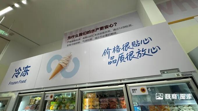 水產(chǎn)區(qū):考慮到成本管控,不賣活鮮,以冰鮮、冰凍為主。