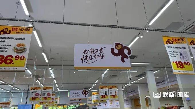 從現(xiàn)場(chǎng)觀察來看,快樂猴門店面積不到1000m²,精選了超1000款高性價(jià)比的民生商品。從門店的挑高來看,約7米高,貨架通道寬度約3.5米,能容納更多的人群購(gòu)物。