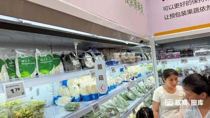 葉菜、菌菇類則按品類整齊碼放,透明化的預(yù)包裝新鮮度肉眼可見。