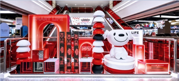 榮獲鉑金獎(jiǎng)的“紅色像素”主題裝置系列,是京東電器的原創(chuàng)設(shè)計(jì)成果。該裝置深度融合京東企業(yè)色與潮酷科技元素,設(shè)計(jì)兼具親和力與時(shí)尚感,為消費(fèi)者帶來遞進(jìn)式視覺沖擊,有效提升消費(fèi)者在門店的停留意愿與互動(dòng)積極性。功能層面,裝置通過系列化設(shè)計(jì)、前沿主題設(shè)定及與本地文化的深度交互,精準(zhǔn)滿足品牌識(shí)別強(qiáng)化、門店特色展示及拉近與本地消費(fèi)者距離的多重需求,為消費(fèi)者打造出兼具品牌標(biāo)識(shí)度與互動(dòng)參與感的沉浸式零售空間。