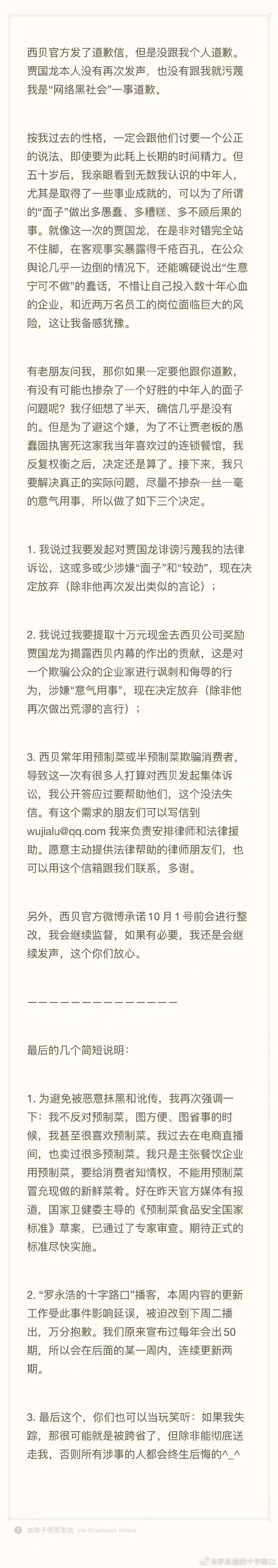 很可惜,羅永浩一直沒能等到賈國龍的回應(yīng),倒是等來了西貝的正式道歉。