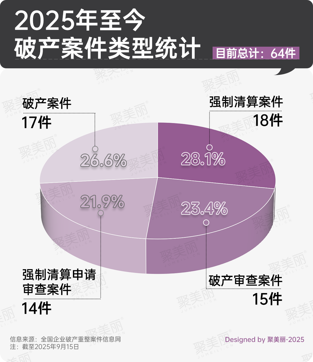 時(shí)至9月中旬,經(jīng)聚美麗在全國(guó)企業(yè)破產(chǎn)重整案件信息網(wǎng)查詢(xún)發(fā)現(xiàn),共計(jì)已有64起化妝品企業(yè)破產(chǎn)相關(guān)案件。上周,聚美麗在《國(guó)貨護(hù)手霜龍頭被申請(qǐng)破產(chǎn)!》一文中報(bào)道,東洋之花母公司上海瑞慈化妝品有限公司申請(qǐng)破產(chǎn)清算。