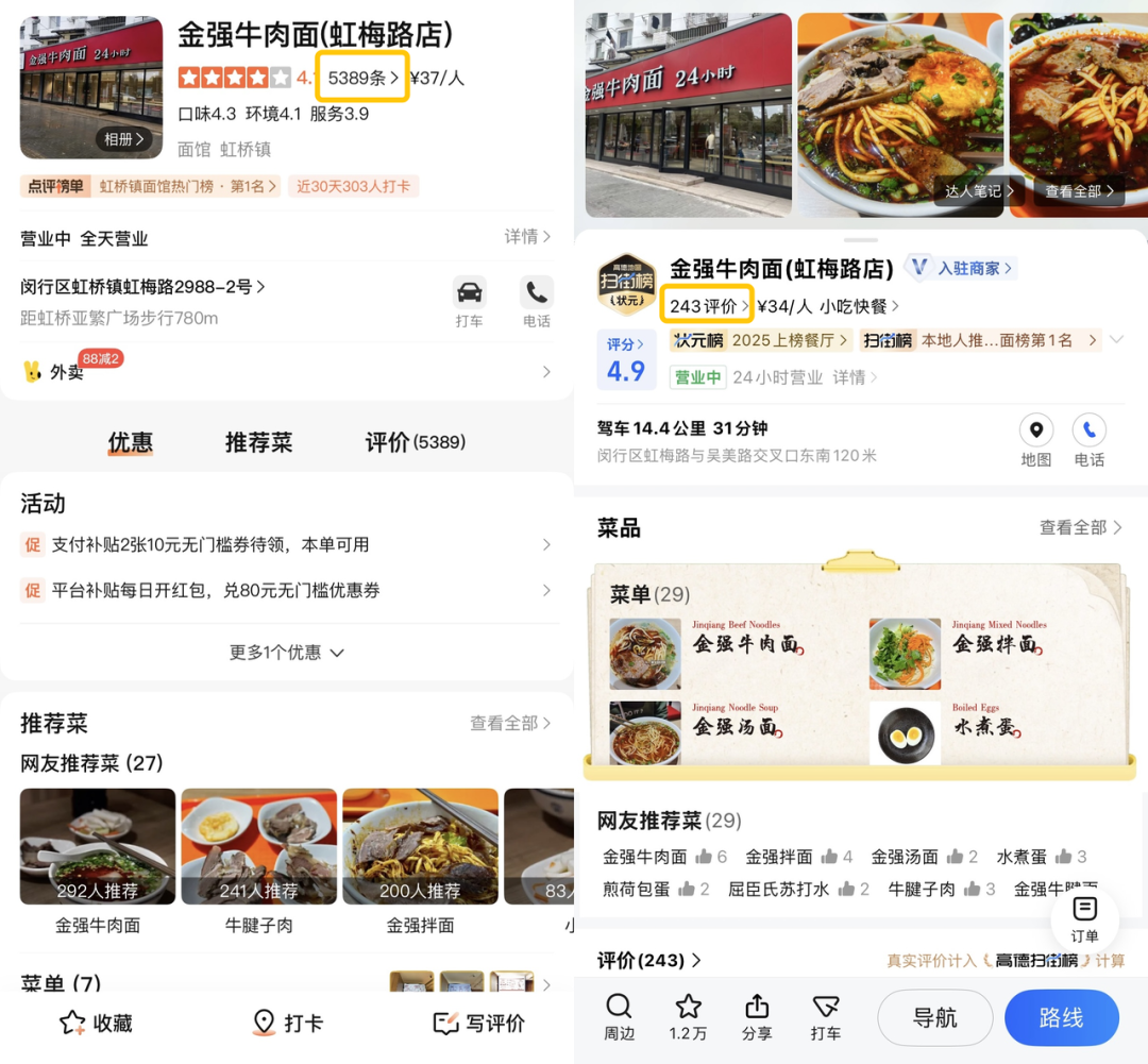 上線第一天,高德掃街榜宣布以4000萬(wàn)日活超越大眾點(diǎn)評(píng)成為國(guó)內(nèi)最大的美食榜單。但在內(nèi)容堆砌的高墻面前,日活恐怕不值一提。
