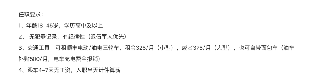 來源:某平臺發(fā)布的順豐快遞員招聘