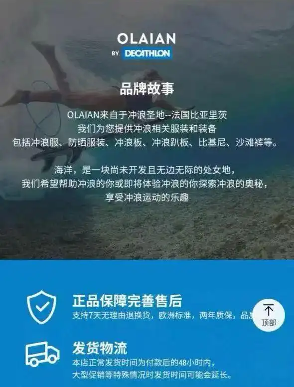此次引發(fā)爭議的,是迪卡儂旗下名為“Olaian”的品牌。根據(jù)公開資料,Olaian是迪卡儂旗下專注于沖浪、趴板沖浪和淺水沖浪的品牌。據(jù)源Sight了解,Olaian的產(chǎn)品涵蓋了沖浪板、潛水服、泳衣、泳褲等多種品類,價格覆蓋面也較廣,介于9.9-3999元之間。