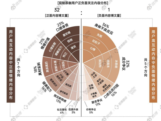 社媒數(shù)據(jù)顯示,健康熱點(diǎn)已成為現(xiàn)制茶咖消費(fèi)者關(guān)注的主流趨勢(shì),其中“身體不良反應(yīng)”和“成分爭(zhēng)議”是引發(fā)用戶負(fù)面反饋的主要風(fēng)險(xiǎn)點(diǎn),相關(guān)負(fù)面情緒內(nèi)容在高互動(dòng)話題中占比高達(dá)36%。