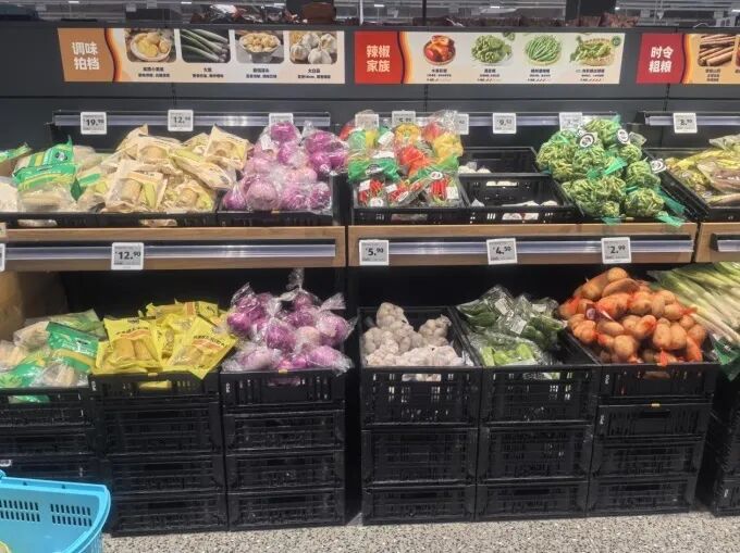 例如,彩椒等小眾蔬菜集中在一個(gè)周轉(zhuǎn)筐中售賣,既節(jié)省了空間,也降低了損耗。這類商品通常按“小袋”或“份”進(jìn)行訂貨和銷售,既能控制損耗,又能滿足家庭小份量購買的需求。