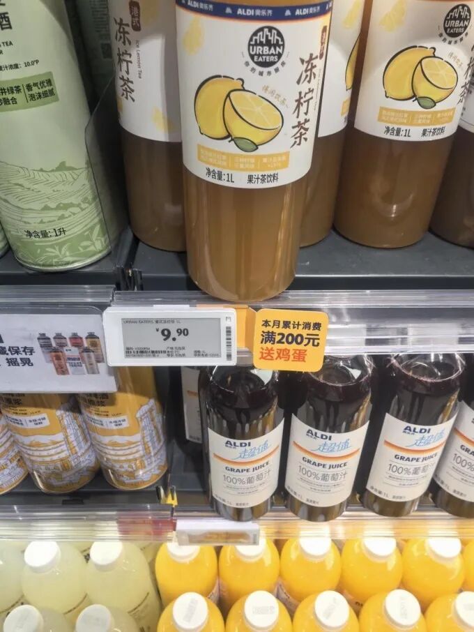 更值得注意的是,奧樂齊的生鮮品類不僅“全”,還“有特色”。除了常規(guī)的本地蔬菜、豬肉禽類,還引入了進(jìn)口牛肉、錫蘭紅茶基底的凍檸茶、德國風(fēng)味香腸等差異化商品,既滿足了大眾家庭的日常所需,也吸引了追求品質(zhì)的年輕客群。