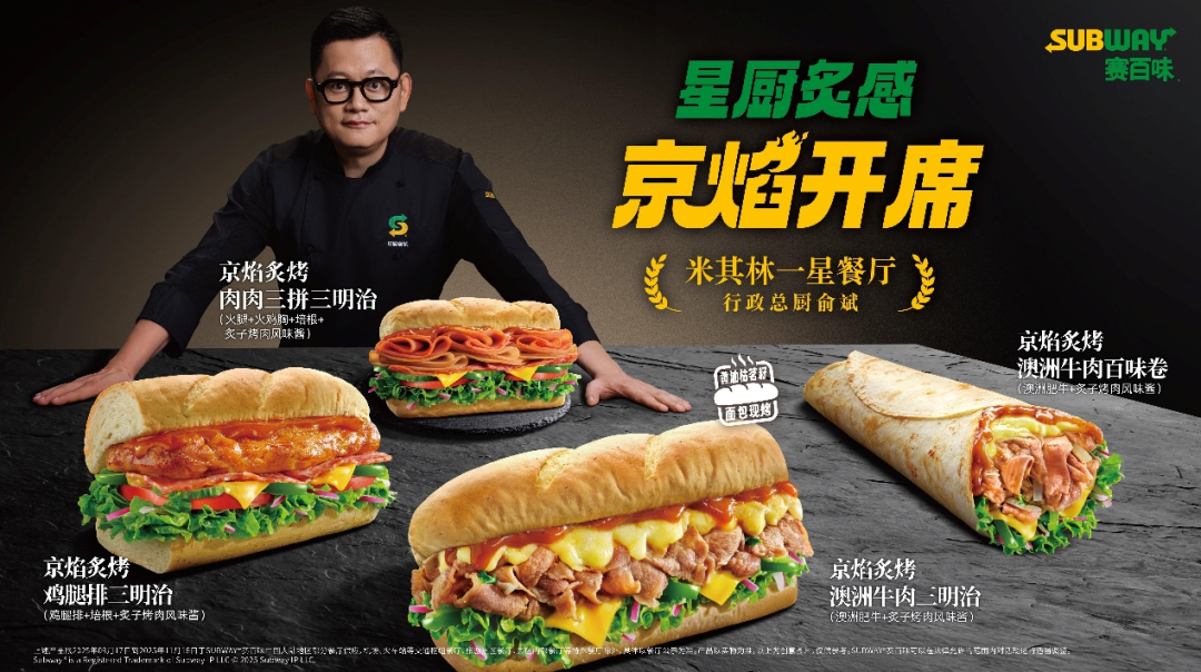 9月17日,賽百味中國(guó)開(kāi)啟了新一輪本土化創(chuàng)新動(dòng)作,宣布在全國(guó)門(mén)店推出“星廚炙感”系列新品。新品的亮點(diǎn)之一便是將北京招牌名菜“炙子烤肉”風(fēng)味融入三明治中,以中西合璧的做法擁抱消費(fèi)者的“中國(guó)胃”。