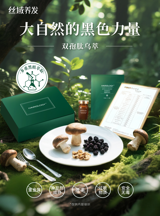 此外,絲域敏銳洞察養(yǎng)發(fā)行業(yè)發(fā)展變化,經(jīng)科學論證后勇于開展前沿創(chuàng)新,發(fā)力探索 “妝食同源” 新風向,成功推出 “食用菌黑發(fā)雙孢肽產(chǎn)品”。該產(chǎn)品作用機理不同于市場上現(xiàn)有任何染發(fā)產(chǎn)品,不含化學染色物質(zhì)、氨水等堿性成分及雙氧水等強氧化劑,相關技術已獲得三項中國授權發(fā)明專利。