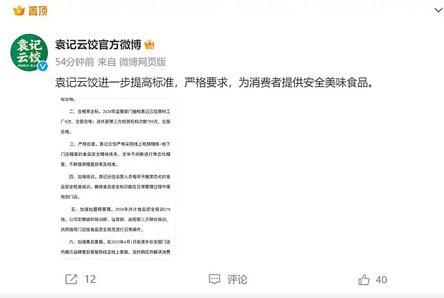 “挨打”之后,袁記云餃在官方微博發(fā)布道歉聲明,承諾2025年在全國門店要嚴(yán)格檢查,并要在公眾號上公布自查報告。