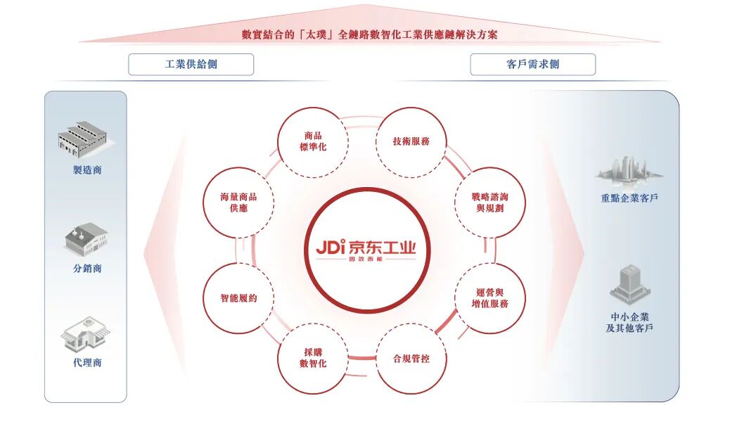 京東工業(yè)招股書顯示,作為一家工業(yè)供應(yīng)鏈技術(shù)與服務(wù)提供商,該公司通過踐行變革性的工業(yè)供應(yīng)鏈數(shù)智化轉(zhuǎn)型,幫助客戶實現(xiàn)保供、降本、增效及合規(guī)。該公司主要通過“太璞”這一“數(shù)”(數(shù)智)、“實”(商品)結(jié)合的全鏈路數(shù)智化工業(yè)供應(yīng)鏈解決方案,提供廣泛的工業(yè)品供應(yīng)和數(shù)智化供應(yīng)鏈服務(wù),以滿足客戶的多樣化需求!疤薄苯⒃谄涠说蕉说墓⿷(yīng)鏈數(shù)智化基礎(chǔ)設(shè)施之上,涵蓋商品、采購、履約及運營。
