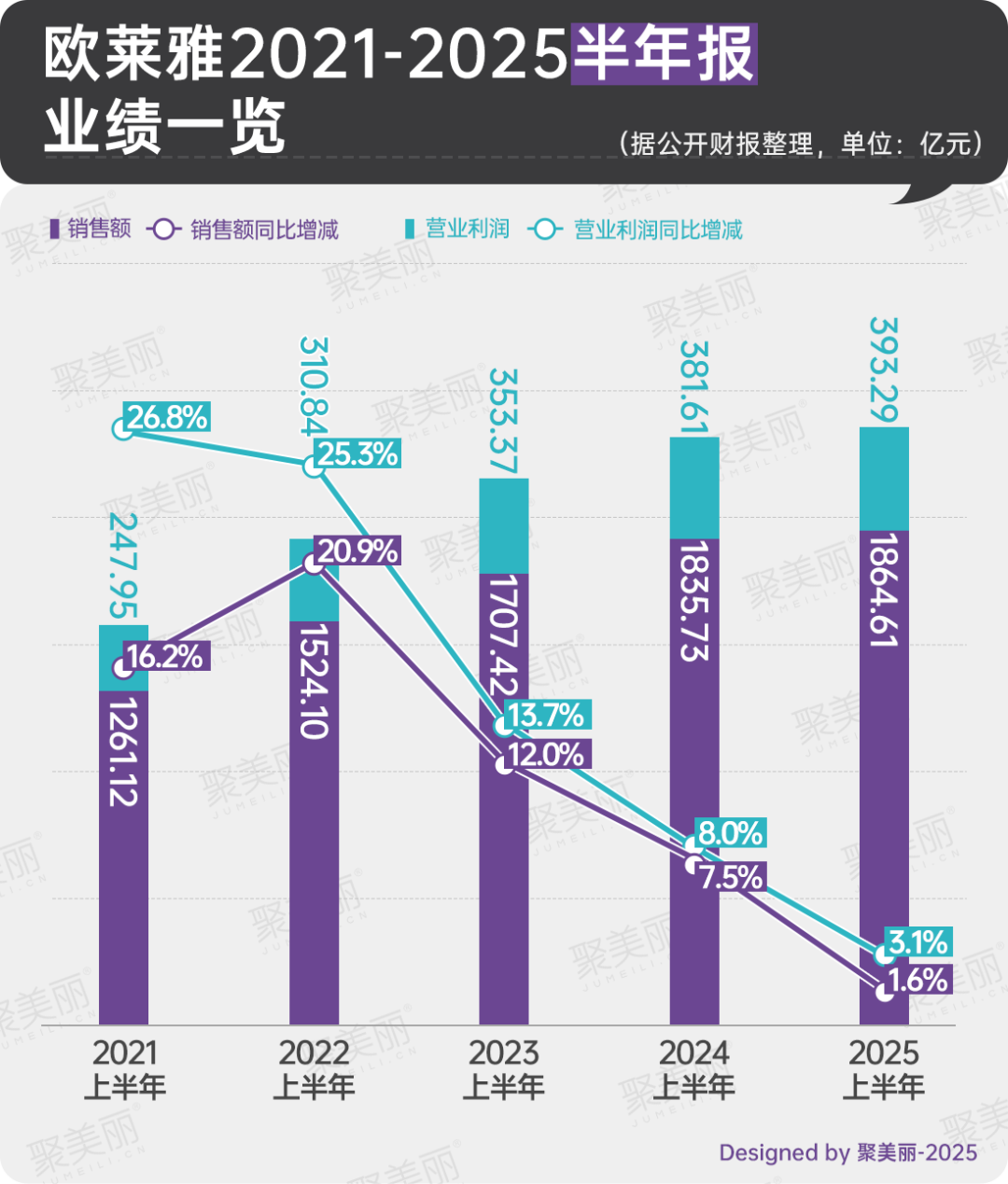 從2021-2025上半年業(yè)績來看,歐萊雅銷售額及營業(yè)利潤雖在持續(xù)增長,但增速較此前明顯放緩。