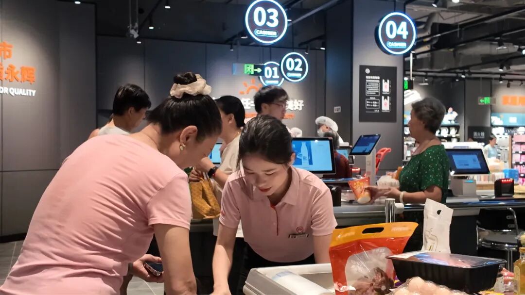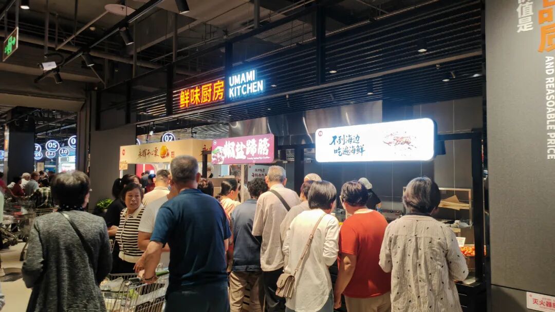 服務(wù)與環(huán)境方面,門店普遍取消強(qiáng)制動(dòng)線,拓寬主通道,將中島貨架高度統(tǒng)一降至1.6米,營(yíng)造開闊通透的購(gòu)物空間。便民服務(wù)區(qū)成為亮點(diǎn),配備身高體重秤、血壓儀、直飲水機(jī)、微波爐、充電寶、寵物安置區(qū)等設(shè)施。細(xì)節(jié)服務(wù)無(wú)處不在:食品貨架配放大鏡方便老人,連卷袋區(qū)設(shè)濕手器,果切按甜度標(biāo)注食用順序,肉禽、海鮮區(qū)提供免費(fèi)加工服務(wù)。嚴(yán)格的“468”鮮度管理原則及部分生鮮日清制度,確保了食材的新鮮與安全。