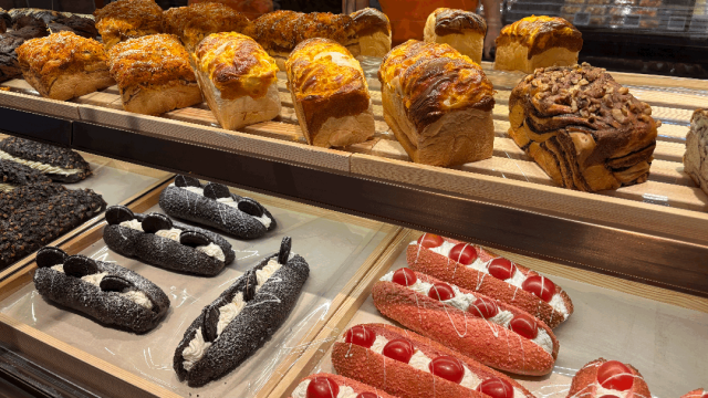 烘焙方面,從原材料保障品質,采用進口動物奶油,不使用代可可脂、氫化植物油、人造奶油、植物奶油和起酥油,堅決杜絕使用脫氫乙酸鈉等防腐劑,現(xiàn)烤類商品堅持日清,不售隔夜,讓商品更安全更健康。各種網紅爆品齊全,如虎皮榴蓮千層、椰蓉餐包、慕斯蛋糕以及歐包、牛角包等等。此外,門店還為顧客免費提供面包分切和加熱服務。