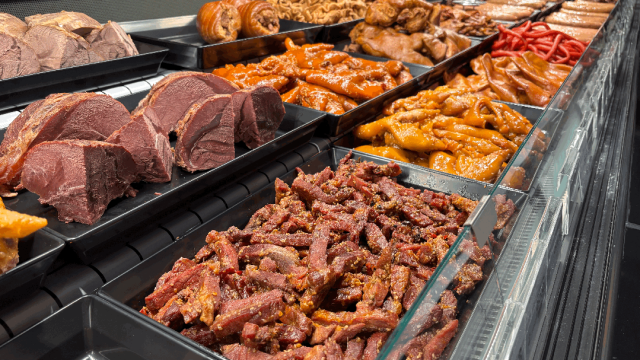 熟食區(qū)全部明檔現(xiàn)制,由專業(yè)團隊制作,從原材料和制作工藝確保品質與安全,并引進了胖東來的優(yōu)質供應商,同時也推出了秘制鹵肉腸、豆瓣甜腸、香辣牛肉條等胖東來同款熟食爆品。各種誘人的香氣交織,形成了賣場獨特的煙火氣。