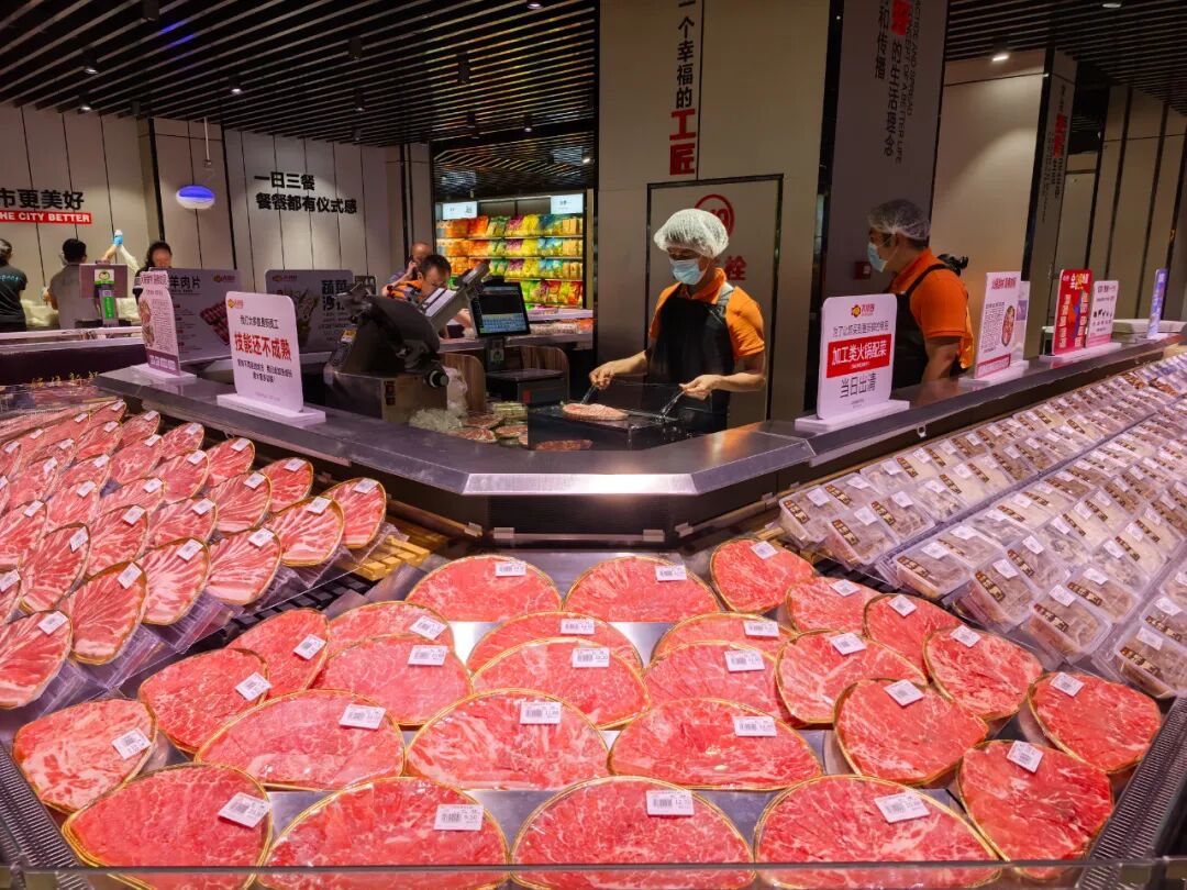 蔬果肉禽方面,商品極具豐富度和品質感,并在凈菜、火鍋菜等品類加工方面做了進一步優(yōu)化提升。葉菜類、鮮肉、分割包裝的雞鴨以及加工類火鍋配菜等全部當日出清,確保商品的新鮮、品質和安全。