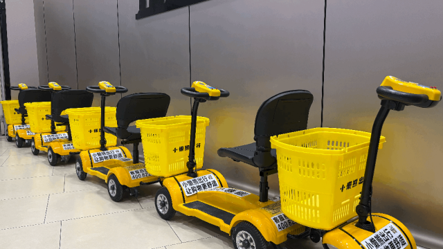 門店還提供寄存服務,寄存柜為人臉識別模式,顧客點擊“存”按鈕,刷臉后柜門自動打開;取包時,點擊“取”按鈕,刷臉后柜門自動解鎖,操作簡單方便。此外,針對特殊需求顧客,門店備有輪椅、嬰兒車、可騎行購物車、寵物寄存柜等設施設備,從細節(jié)處為顧客考慮。