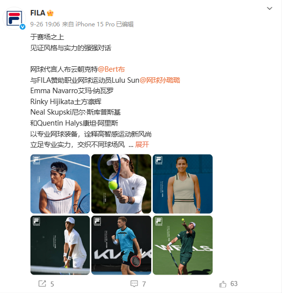 在產(chǎn)品層面,F(xiàn)ILA以專業(yè)功能產(chǎn)品為紐帶,將品牌與網(wǎng)球運動的場景需求深度綁定,形成“裝備即運動符號”的認知。