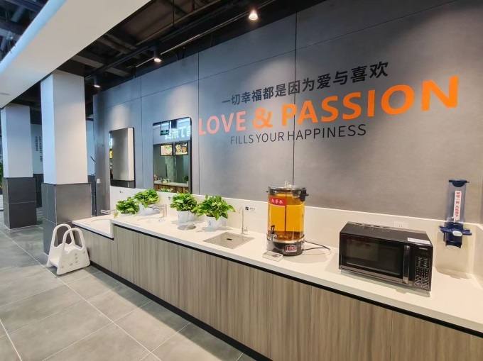 真實(shí)惠通過對(duì)操作間、后倉、設(shè)備間的系統(tǒng)性規(guī)劃,構(gòu)建“以人為本”的工作環(huán)境,切實(shí)減輕員工勞動(dòng)強(qiáng)度,以此傳遞對(duì)員工的深度關(guān)愛。例如:將操作間(如生鮮加工區(qū)、熟食制作區(qū))與銷售區(qū)近距離銜接,縮短員工取貨、補(bǔ)貨的往返距離。例如,生鮮區(qū)操作間緊鄰陳列柜,員工無需長(zhǎng)距離搬運(yùn)食材,既節(jié)省體力,又提高加工效率。同時(shí),按“加工-存儲(chǔ)-銷售”的流程邏輯布局設(shè)備與工作臺(tái),避免員工交叉作業(yè)和重復(fù)移動(dòng),降低勞動(dòng)強(qiáng)度。
