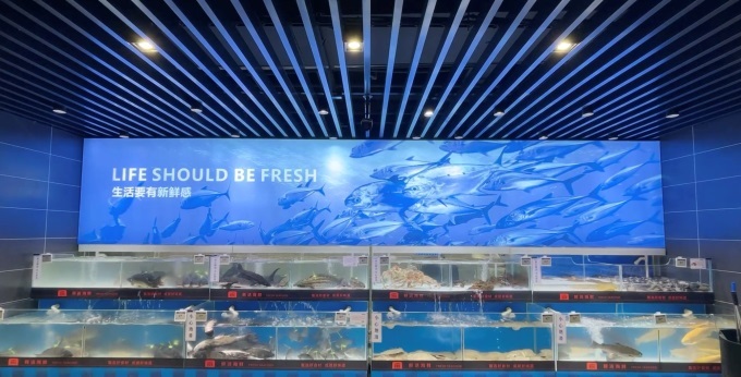 生鮮蔬果區(qū)域采用“動(dòng)線分明”的布局,將時(shí)令蔬果、進(jìn)口精品、精品凈菜、預(yù)包裝果切等進(jìn)行分區(qū)陳列,方便顧客挑選。果切臺(tái)采用全新封閉防塵空間設(shè)計(jì),從切配到存放全程防護(hù),有效隔絕外界污染,讓顧客可以放心食用鮮切水果。